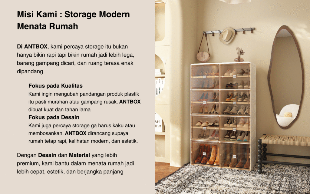 Solusi perabotan instan yang pintar mulai dari lemari pakaian yang kokoh hingga kabinet sepatu yang estetik yang bisa digunakan dalam hitungan menit tanpa bantuan alat pertukangan atau obeng sama sekali.
